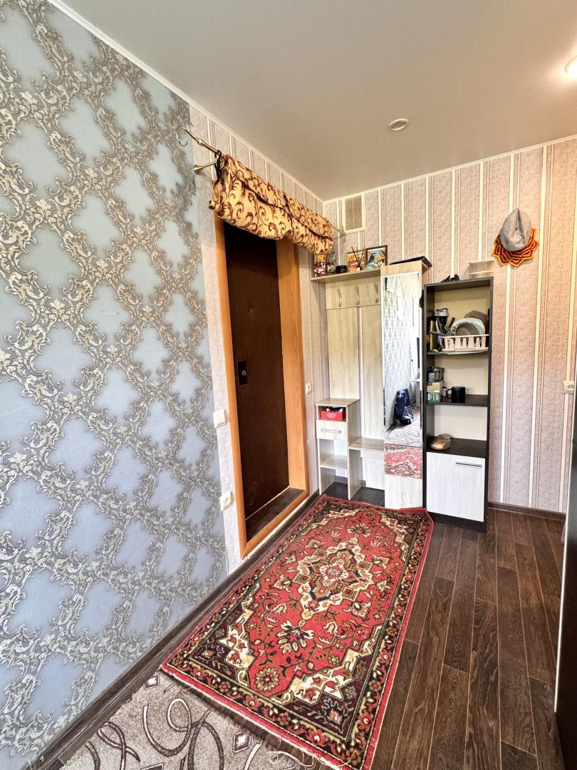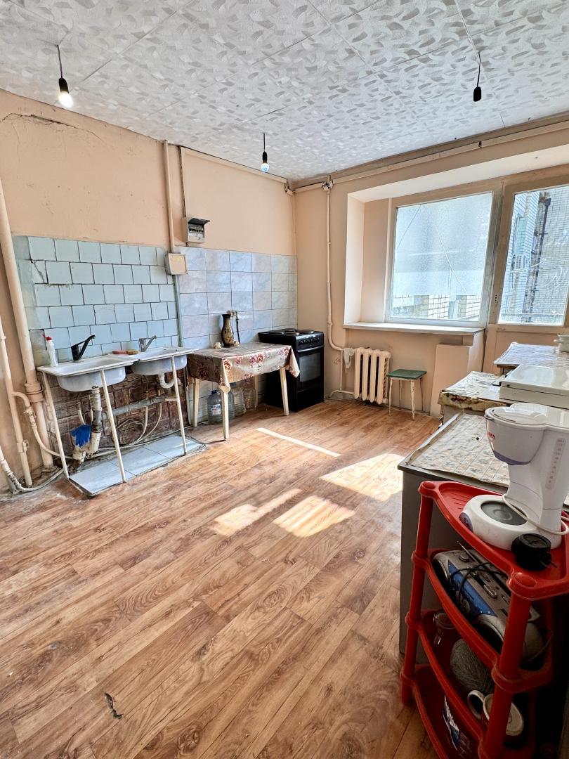 В комнате был сделан капитальный ремонт:заменены проводка, радиаторы отопления, установлено пластиковое окно, полы выровнены, постелен линолеум, натяжной потолок.