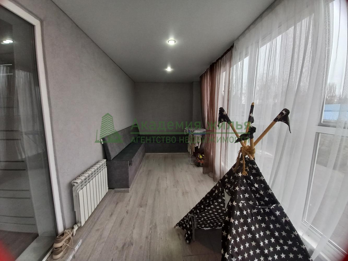 Первый этаж: кухня-студия, 1 изолированная комната, ванная, 2 кладовые. Второй этаж: 3 изолированные комнаты,. ванная, балкон утепленный и открытый.