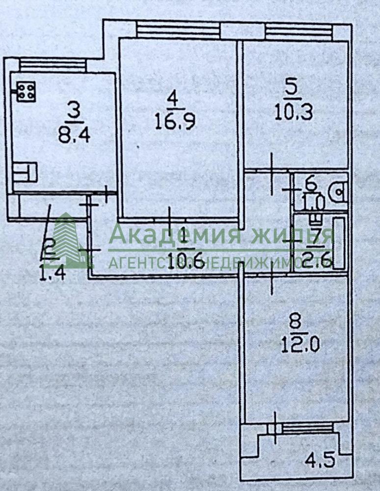 Комнаты изолированные (16,9/10,3/12 кв.м), выходят на две стороны дома, кухня 8,4 кв.м, санузел раздельный